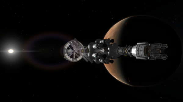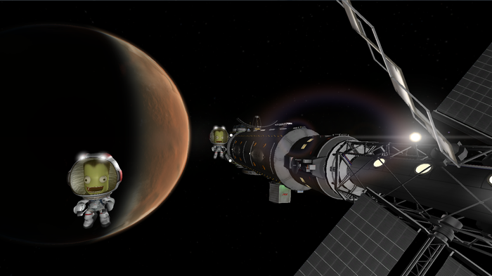 Повинуясь джойстикам, реактивная система управления быстро развернула двух кербонавтов с Гермеса.