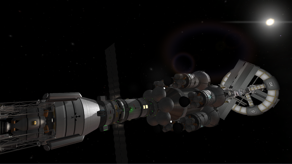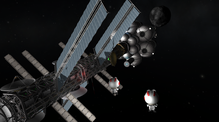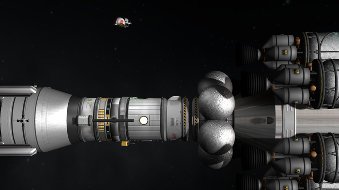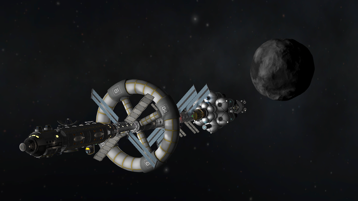 Джеб улыбался, будучи довольным от успеха обеих миссий. Да и свой корабль он любил. Через несколько секунд Джебидайя включил двигатель на несколько секунд и, по завершении прожига, развернул корабль как и обещал, попутно сверяя траекторию сближения. Недзер с интересом прильнул к иллюминатору.