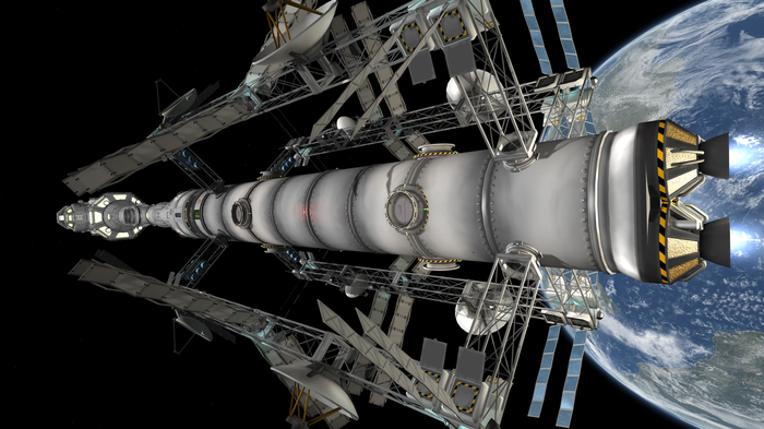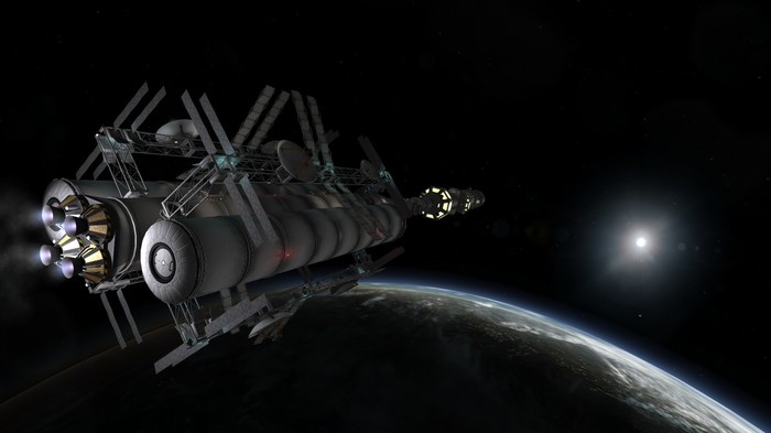 (Красивые баки, детальки и прочие фермы с отражениями и бликами - мод SSTU, который я, не удержавшись, все-таки поставил. Раньше с ним играл и он очень удобен и красив.)