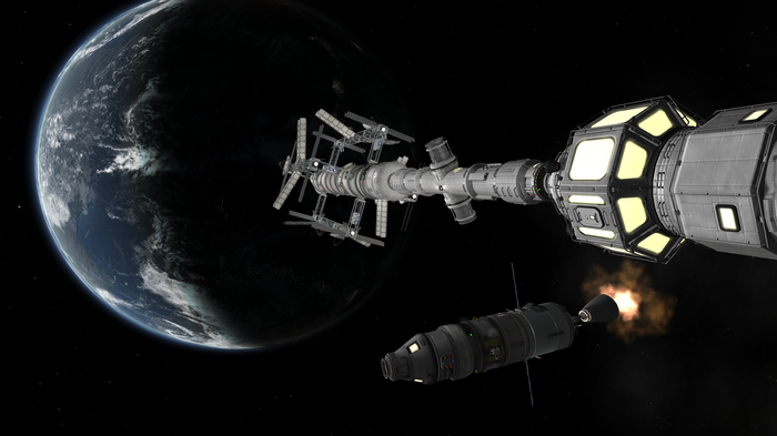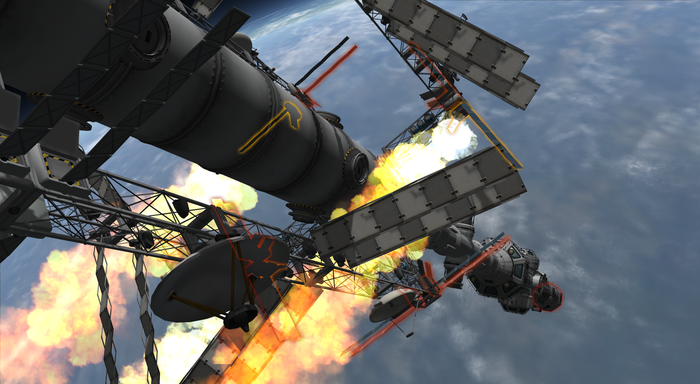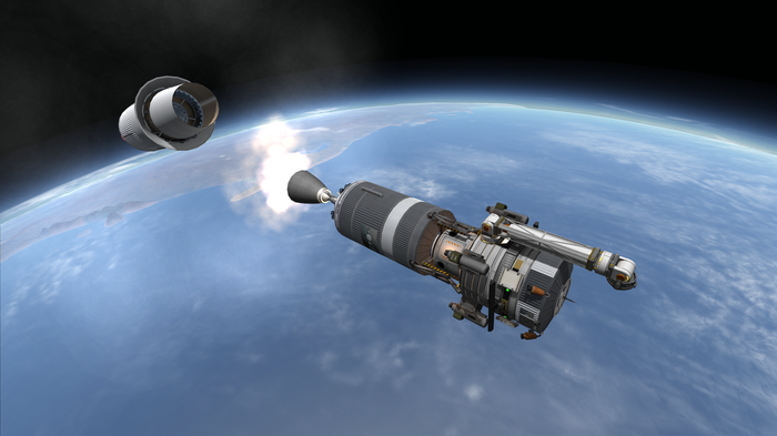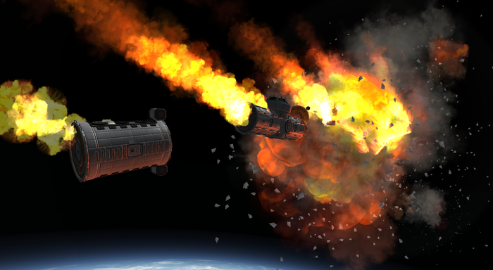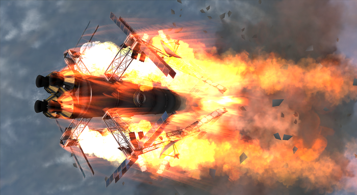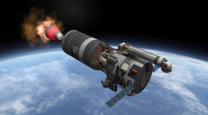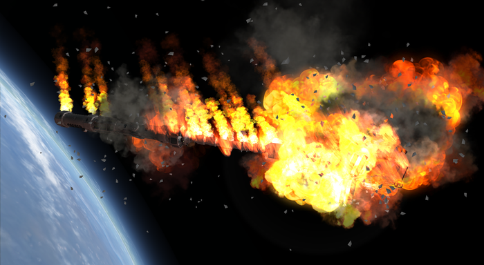 Моды на реалистичные аэродинамику и нагрев (FAR и DeadlyReentry) очень красиво уничтожают входящие в атмосферу корабли. Их гнет и разворачивает воздух, самые непрочные соединения разрушаются, а корабль вспыхивает как спичка. По этой причине вернуть с орбиты что-то крупное и тяжелое весьма сложно и экономически не выгодно.