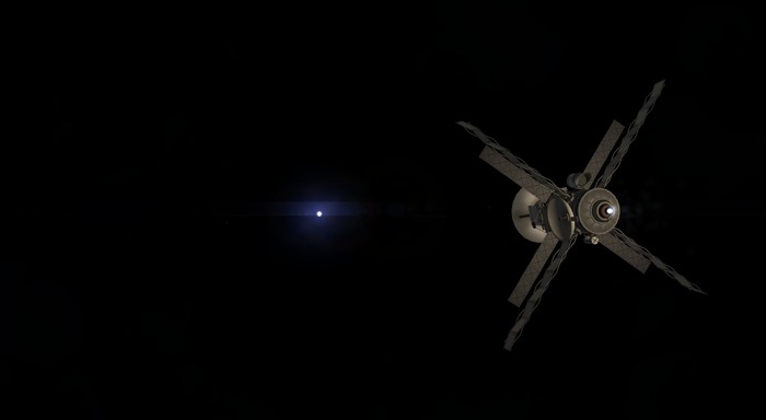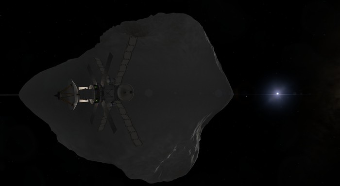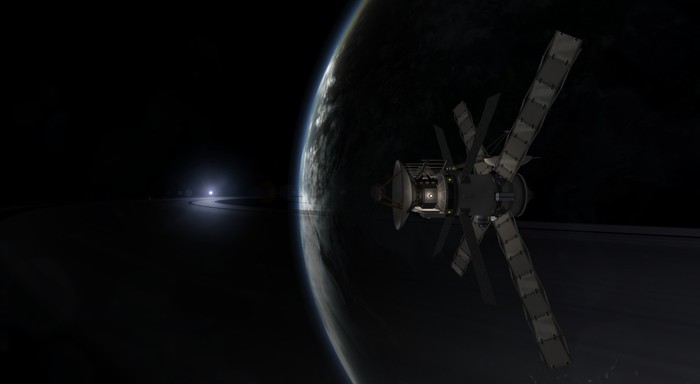 Выйдя из сферы притяжения Лили, заметил очень прикольный баг. Спутник мой медленно вращался ВО ВРЕМЯ ВАРПА (нет, PersistentRotation не установлен уже), а ВНЕ варпа вращения не было, зато орбита поворачивалась. Впервые такое вижу. Ну, рестарт сэйвгейма проблему решил.