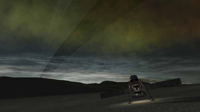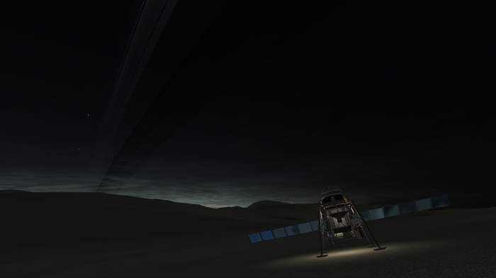 Вид с поверхности не особо впечатлил. Нивен мне показался интереснее, поскольку закат с его поверхности выглядит точь-в-точь как марсианский. А тут... Duna style. :)