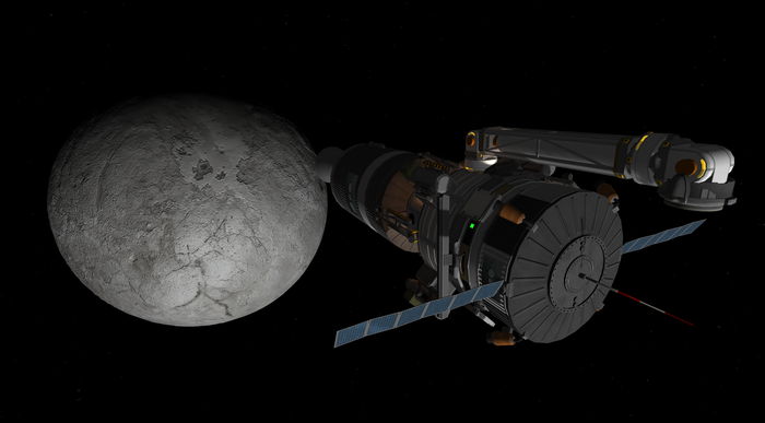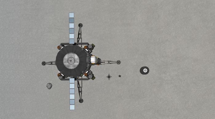 Что нам нужно: прежде всего сканер на орбите. Он есть - недавно соорудил следующее поколение спутника и запульнул несколько кое-куда, включая ближайший спутник Айоту (Iota), аналог Муны. О нем позже. Что еще? Ну, очевидно, бур на поверхности. Но не простой, а с которым можно стыковаться. На поверхности. Как это сделать?