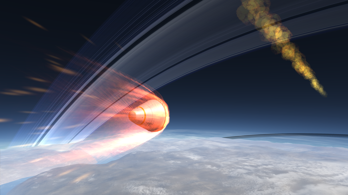 Стоило пролететь кораблю первые несколько километров в атмосфере, как его почти сразу окутало беспощадное всепожирающее облако высокотемпературной плазмы.