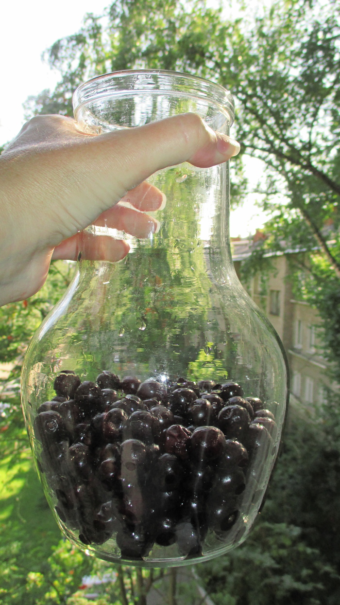 Насыпать в банку ягод на 1/3 (я так и сделала, только не в банку, а в крынку).