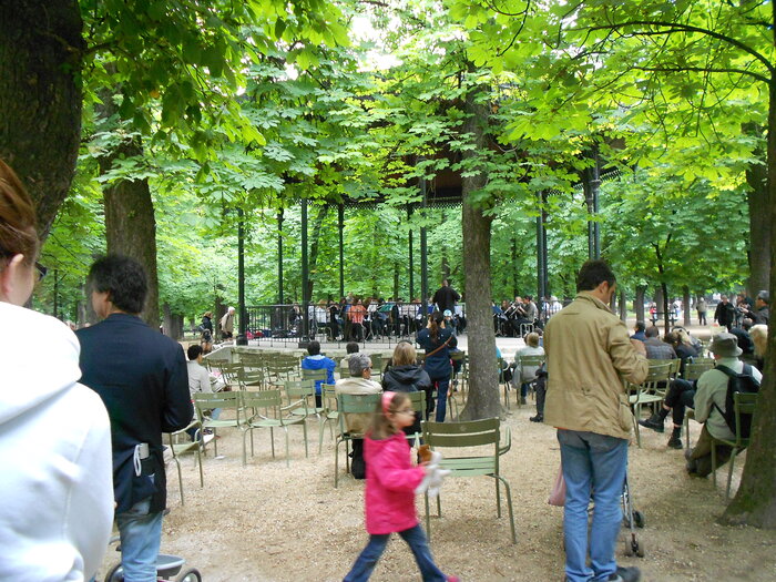 А какие-то очень приятные музыкальные на улице или в парке и любой желающий может сесть на стул послушать