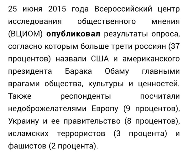 Россияне считают США, Европу и Украину хуже Игил и фашистов