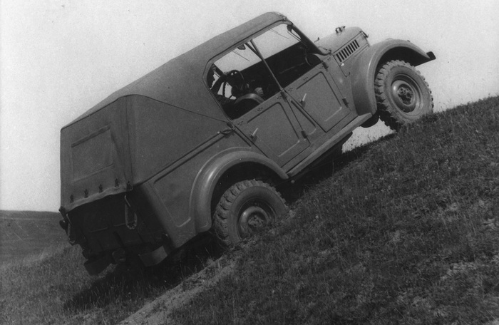Предыстория такова. С 3 по 8 февраля 1943 года в Москве прошло совещание конструкторов автомобильных и смежных заводов Народного комиссариата среднего машиностроения. Главный конструктор ГАЗ Андрей Александрович Липгарт доложил, что в послевоенные планы II очереди включена «легковая машина для провинции типа ГАЗ-64, военного «Виллиса», «Бантама» и др. с приводом на 4 колеса (собранная на агрегатах ГАЗ-25) с закрытым деревянным кузовом». Предназначался такой автомобиль «для районов с плохими дорогами, как военная машина связи и тягач малокалиберной противотанковой артиллерии». 19 июня 1945 года на показе в Кремле горьковских новинок — М-20 «Победа» и ГАЗ-51 — вопрос о новом лёгком вездеходе был поднят повторно в разговоре со Сталиным.