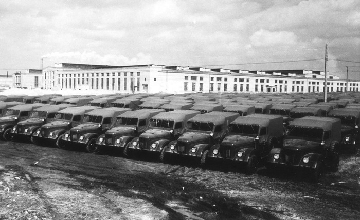 Новенькие ГАЗ-69 на товарном дворе Ульяновского автозавода, 1957 г.