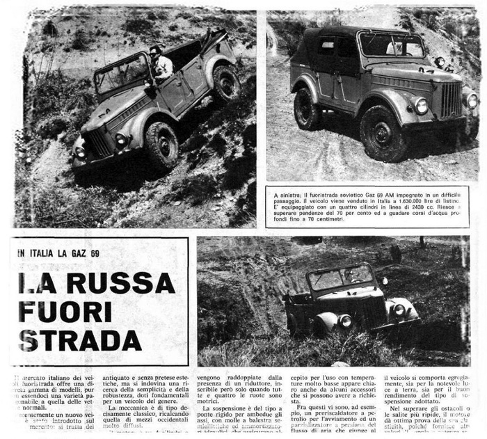 Статья в итальянском журнале L’Automobile, № 39 за 28 сентября 1969 года о новом советском вездеходе. Обращают на себя внимание шины увеличенного наружного диаметра.