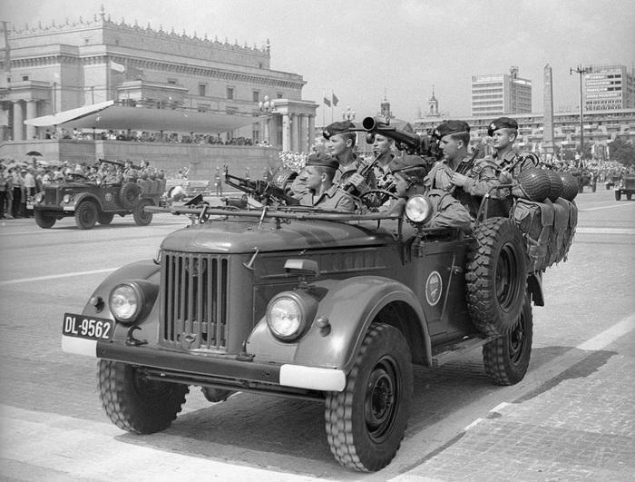 6‑я воздушно-десантная дивизия Войска Польского на параде, посвящённом 1000‑летию Польши, 22 июля 1966 года. В кузове ГАЗ-69 смонтировано 82‑мм безоткатное орудие Б-10.