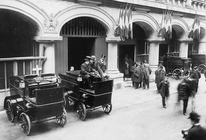 Великий князь Алексей Александрович Романов (сидит по правому борту) в электромобиле конструкции Жан-Жака Хейльмана (Jean-Jacques Heilmann) на прогулке в Булонском лесу. Князь, отвечавший за русский флот, вел праздный образ жизни, в результате чего Россия потеряла две эскадры в Цусимском сражении 1904 года.