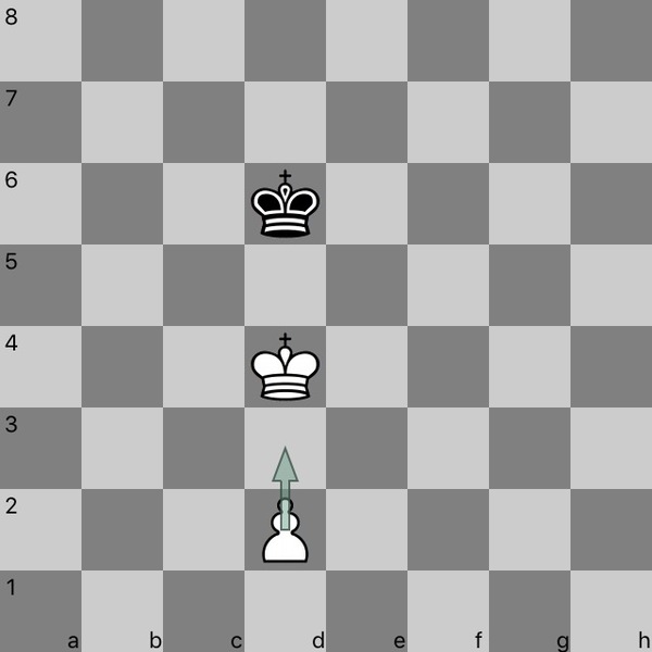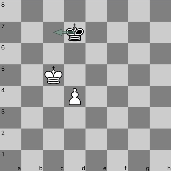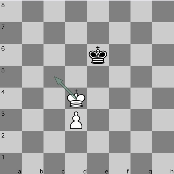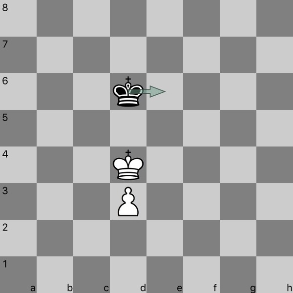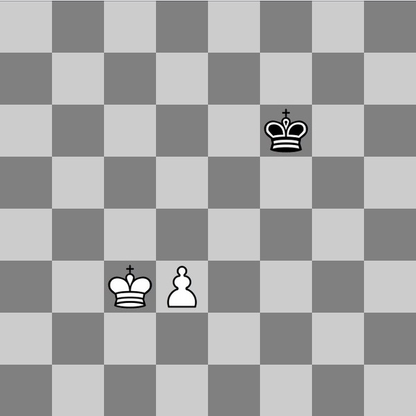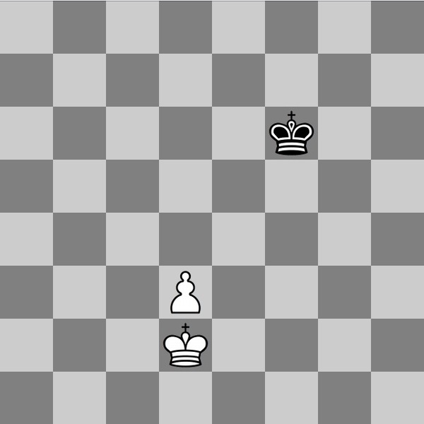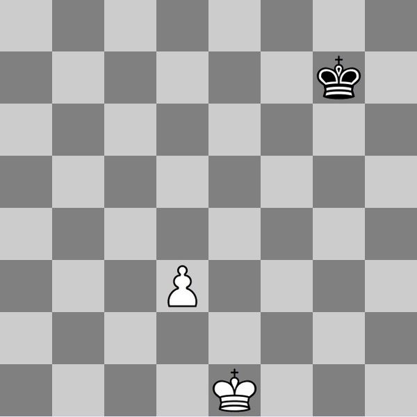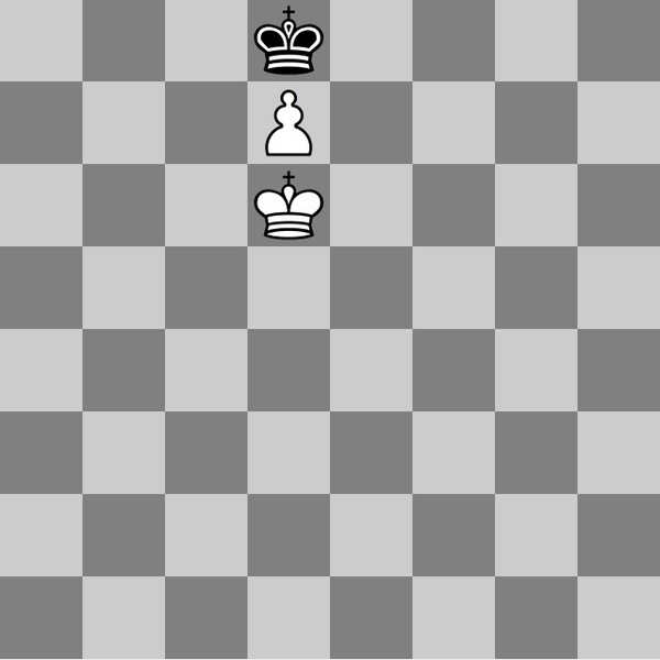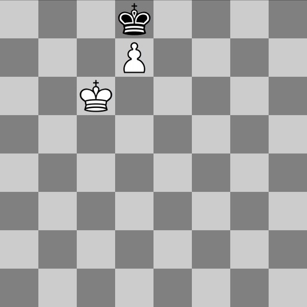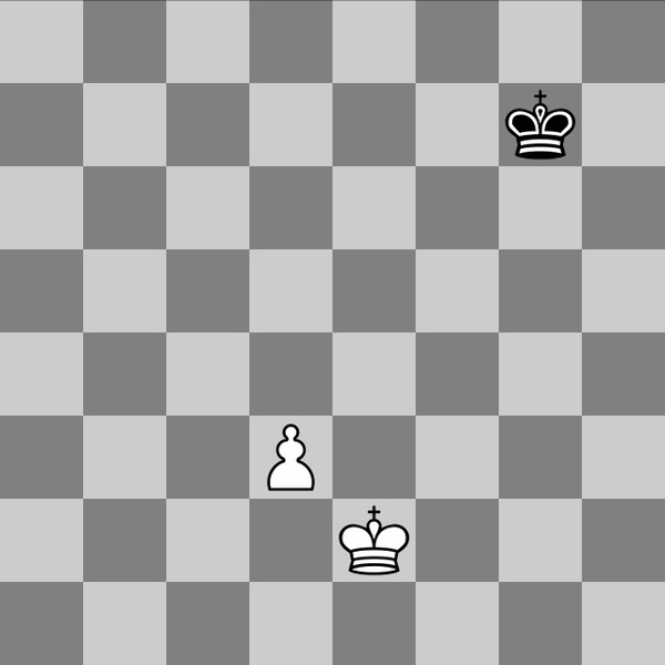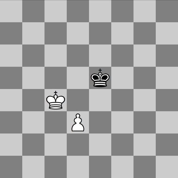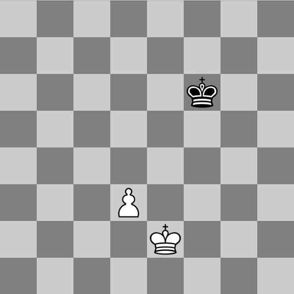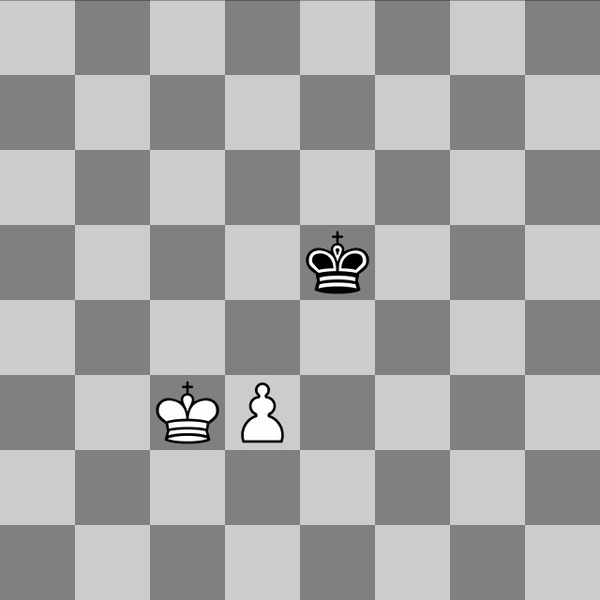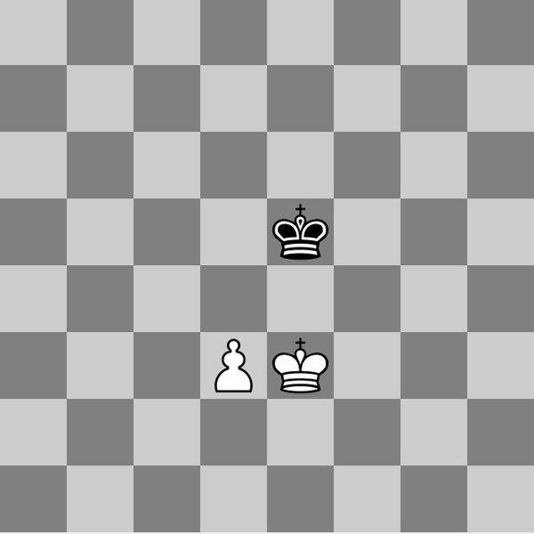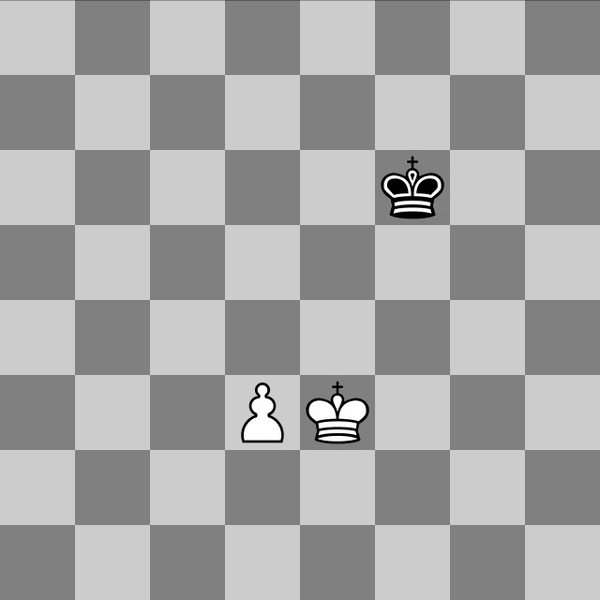 Почему? Дело в расположении королей. Для продвижения пешки король должен двигаться впереди, "расчищая" дорогу. Если король противника займет ключевые поля, а именно три поля перед пешкой, он обеспечит себе ничью.