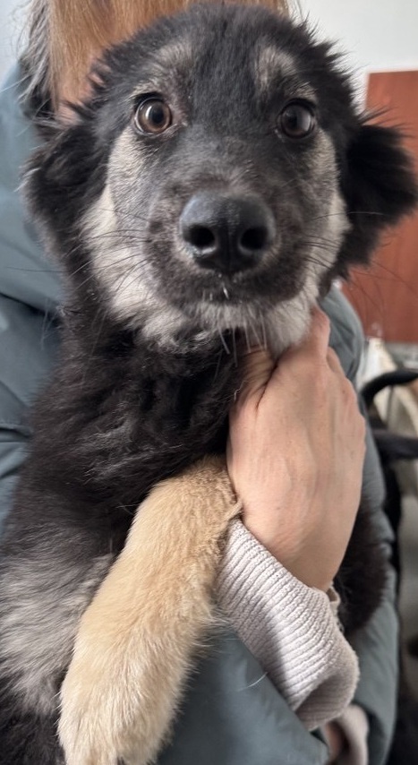 Мальчишка очень скромный, тактильный и ласковый. Активный щенок. Братики на передержке его обижают..
