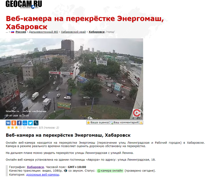 Дамы и господа, кто из Хабаровска, расскажите, у вас там правда так сильно различается погода в радиусе 2-3 км? Или все таки онлайн-камеры какие-то неправильные...