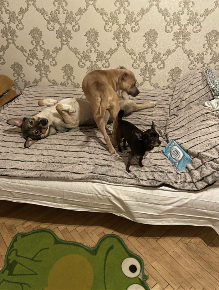 Знакомили ее со своими собачками. Стелла грымза и зооагресор, с нашими собаками держит нейтралитет только потому что это их территория. Но стычки все равно случались.