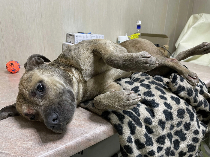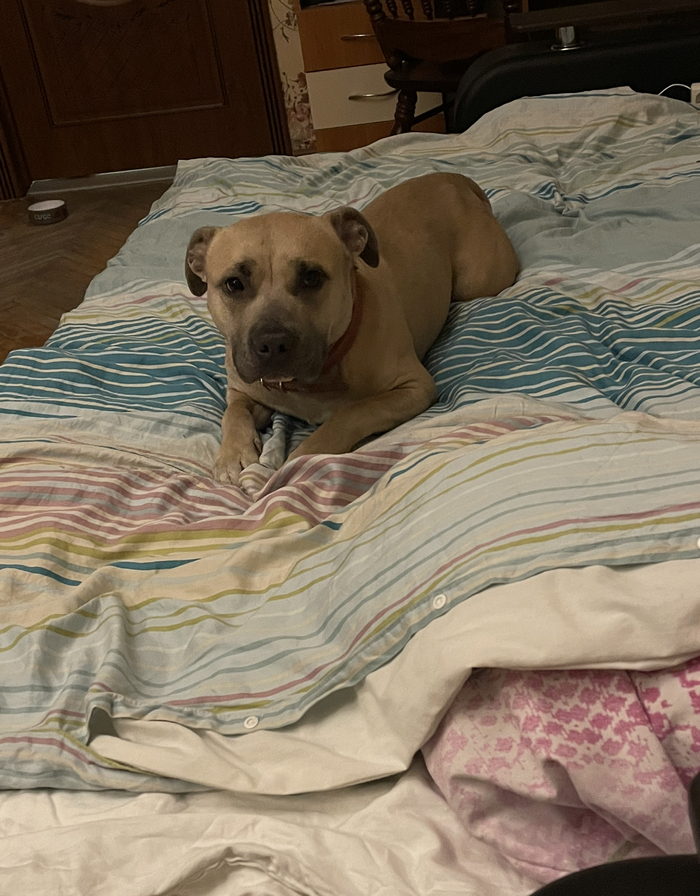 АмстаффкомандаПитер согласилась привезти собаку в Санкт-Петербург, если найдётся передержка. Мы вызвались помочь, хотя понимали, что это чуток безумие, брать неходячую собачку, живя на третьем этаже без лифта. В итоге нам повезло и Стелла оказалась клопом 18кг, мы ожидали большего :)