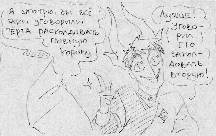 В очередной раз благодарю тех, кто закинул мне денежек под прошлым постом. У меня для вас (и всех остальных, ладно уж) есть ещё скетчи про пивную корову: