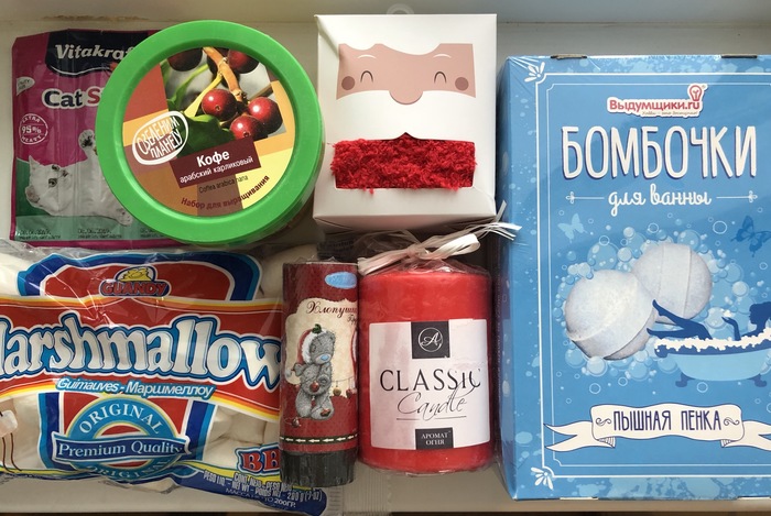 А там все девичьи радости - сладости, уютные носочки, набор, чтобы радовать себя хэнд мэйд бомбочками для ванны, много чего еще и самое главное зерна кофе для выращивания!