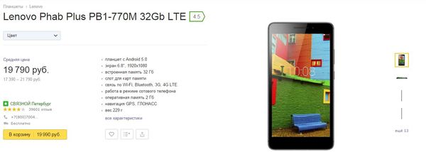 1. Lenovo Phab Plus PB1-770M 32Gb LTE - не совсем телефон, скорее планшет. Диагональ почти 7 дюймов 0_0