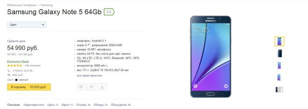 2. Samsung Galaxy Note 5 64Gb - продолжение линейки Note, хотел брать еще первую модель, но денег не хватало))