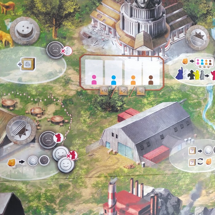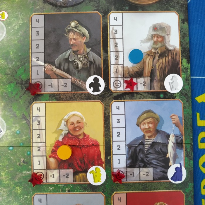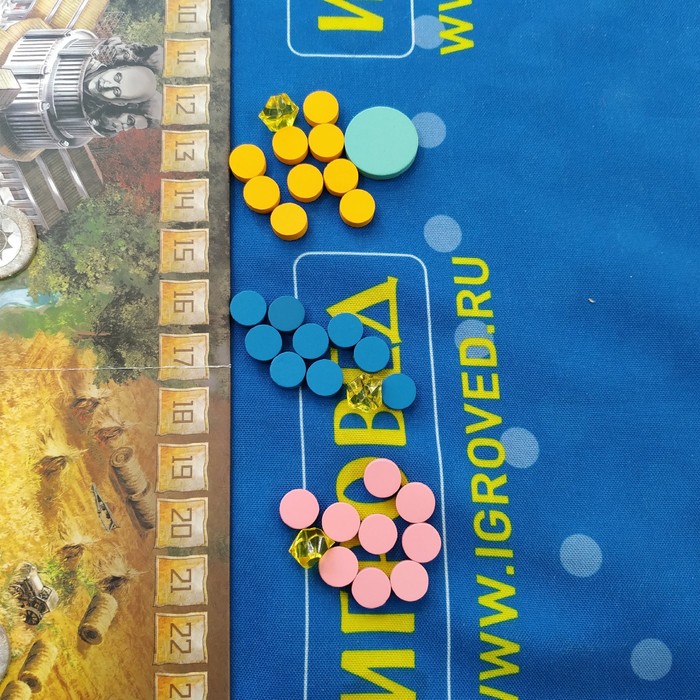 Так же, в игре на 2-х игроков в игре участвуют только трое из "вельмож" (квадратные жетоны сверху). Мне удобно называть их "дворяне", в любом случае, это не меняет никак игровой процесс.