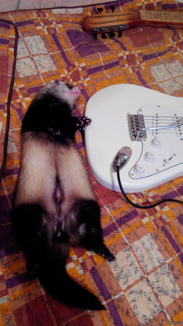 14 barsutolog 10 лет назад Милота Рок звезда после концерта))) Хорек Сон Электрогитара Усталость Животные