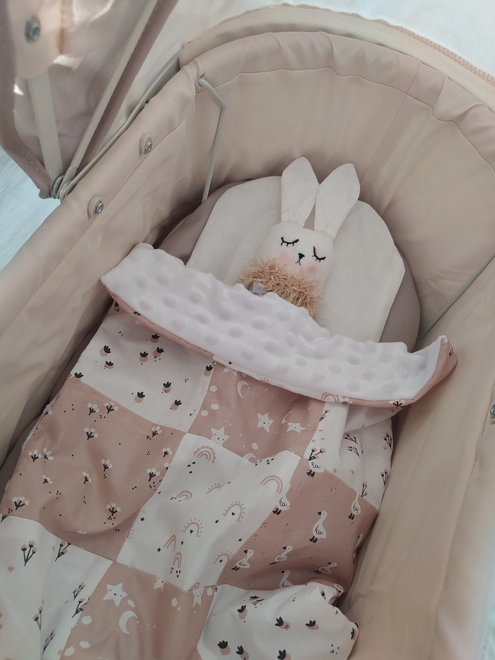 Ещё мягкие игрушки зайки , котик,их я подарила малышам, так же плед в дополнение к коляске, которую подарили на 1год
