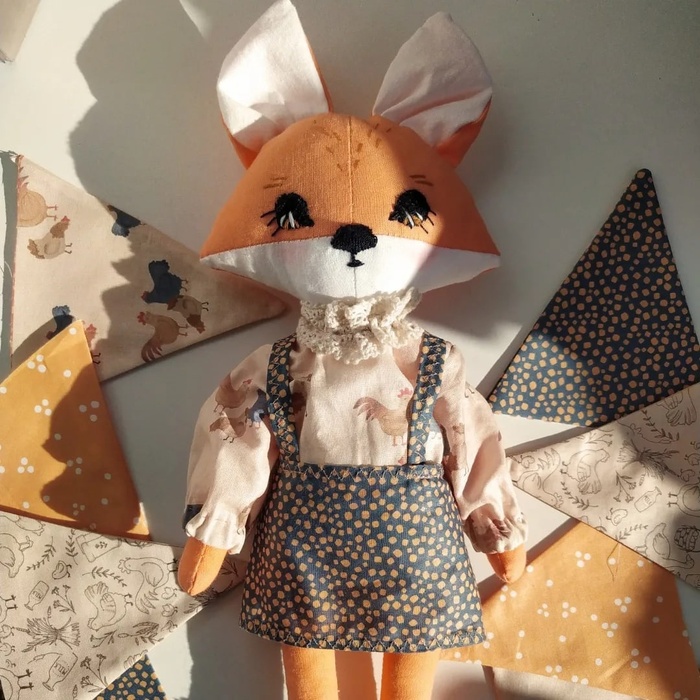 Люблю листать картинки ручных работ в Pinterest Instagram, насколько есть талантливые люди со вкусом! И вот наткнулась на пару мастериц которые меня вдохновили на то, чтобы сшить мягкую игрушку, а потом мне попались ткани с классными принтами , заказала можно сказать на последние деньги, последняя выплата пособия. Так появилась лисичка с постелькой!