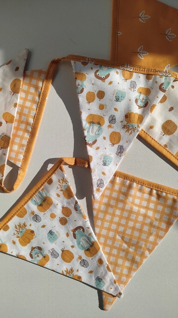 в это время подруга решила сфотографировать десятимесячную ,дочь , , , она каждый месяц ее фотографирует в определенной тематике,тема была осень тыквы, и как раз были ткани прям подходящие, так получились флажки