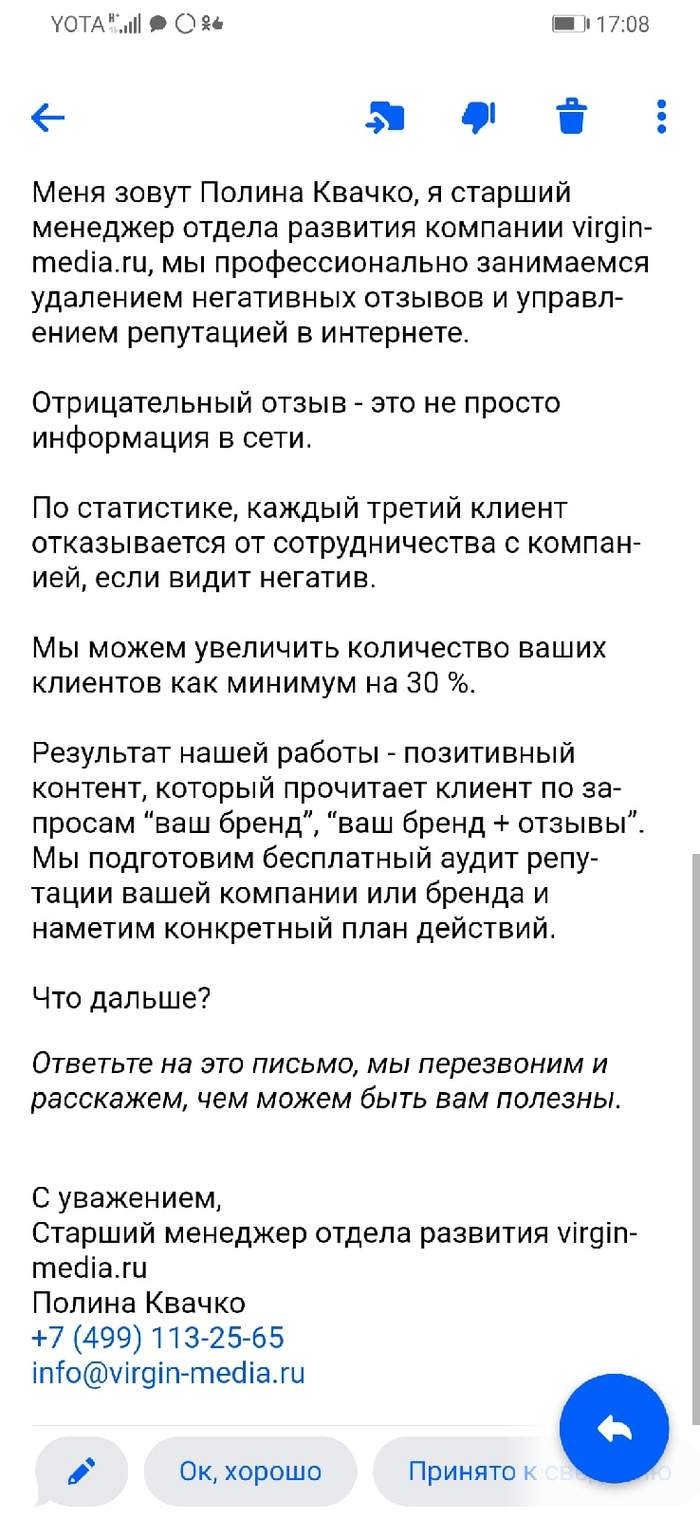 Может кто подскажет как с таким бороться, вымогательство чистой воды, но ведь ничего не докажешь, сайты разные, отзывы "реальные"... платить? нет никаких гарантий что завтра там не появится еще пара отзывов. и самое обидное что по поиску он на первой странице...