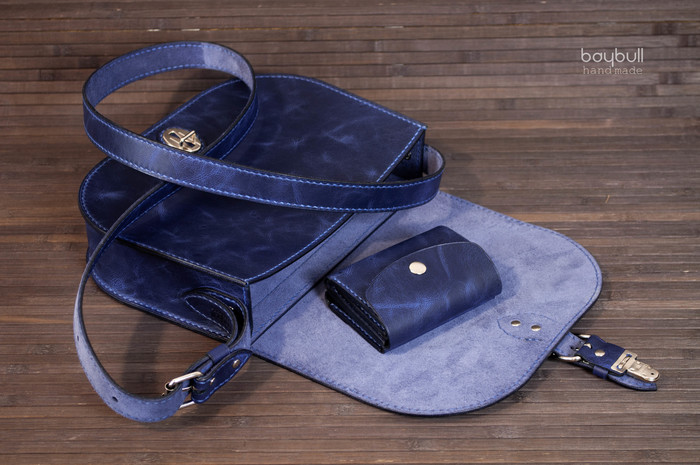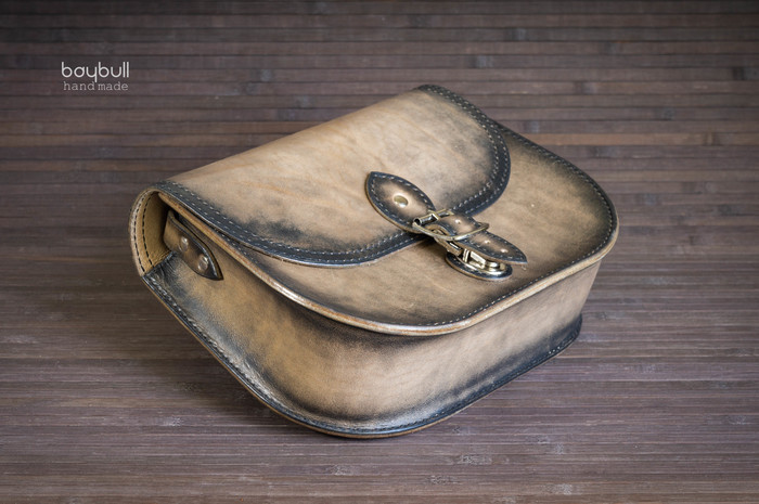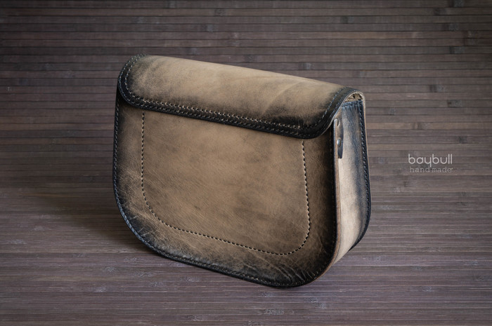 Поступил заказ от благоверной - ко Дню рождения, хочу новую небольшую сумочку, и чтобы она была "не как у всех!". Так как она не любит гламур, решил поэкспериментировать с обработкой кожи. Была выбрана модель сумки через плечо, так называемая "saddel bag".