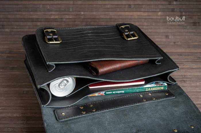 Обработал светло-бежевую кожу (краст, чепрак) чёрным карнаубским воском. Получилось интересно, необычно, и уж точно не как у всех. Хотел было назвать сумку "Труп невесты", или "из кожи трупа невесты", но сдержался)). Особенно мило выглядят розовые прожилки на коже). Заказчица в восторге, говорит, что взгляд притягивает!