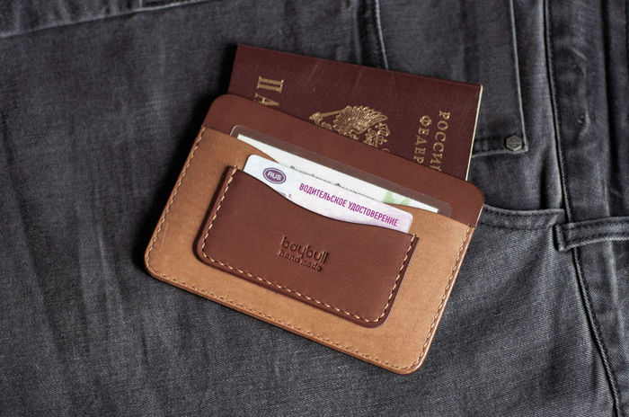 Чехол/обложка/портмоне/органайзер/карман или как угодно можно назвать. Задумывалось для того, чтобы можно было вместить и паспорт полностью и документы для авто, несколько дисконтных и банковских карт. В итоге- у мужа хранится именно то, что перечислено, у меня- купюры, два медполиса, снилс и банковская карта. Натуральная кожа, седельный шов, вощеная нить.
