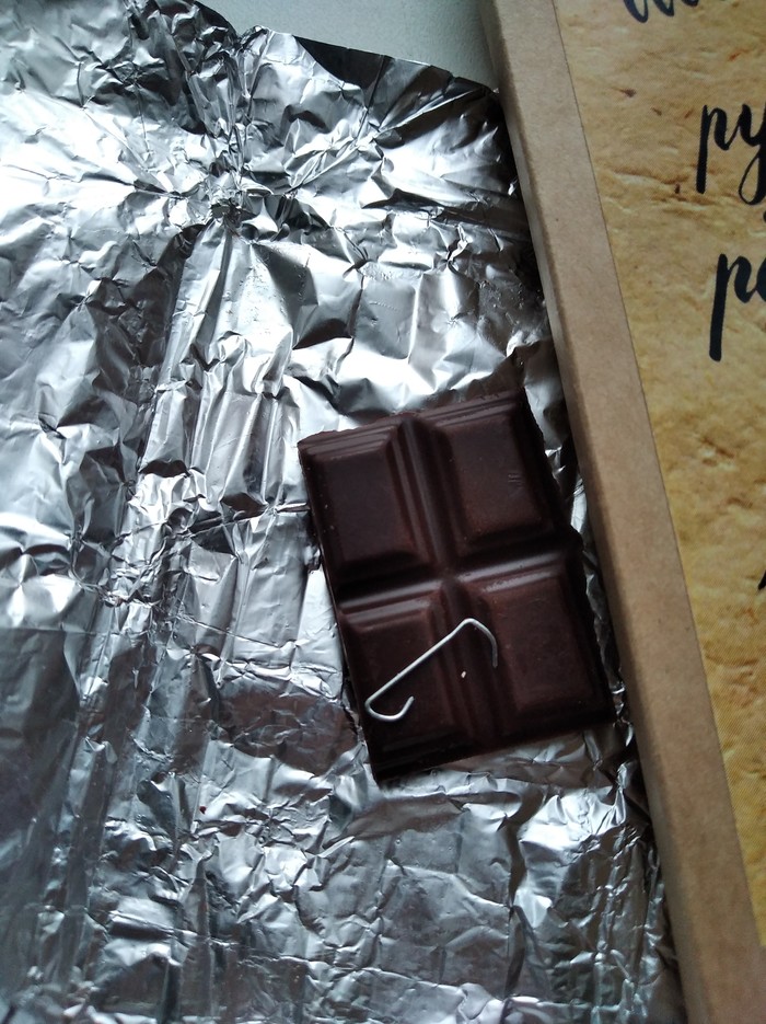 Только шоколадка с сюрпризом оказалась. Чтоб было понятнее: жую кусок шоколада, чувствую языком что-то острое. Вытащил скрепку. Чуть не проглотил.