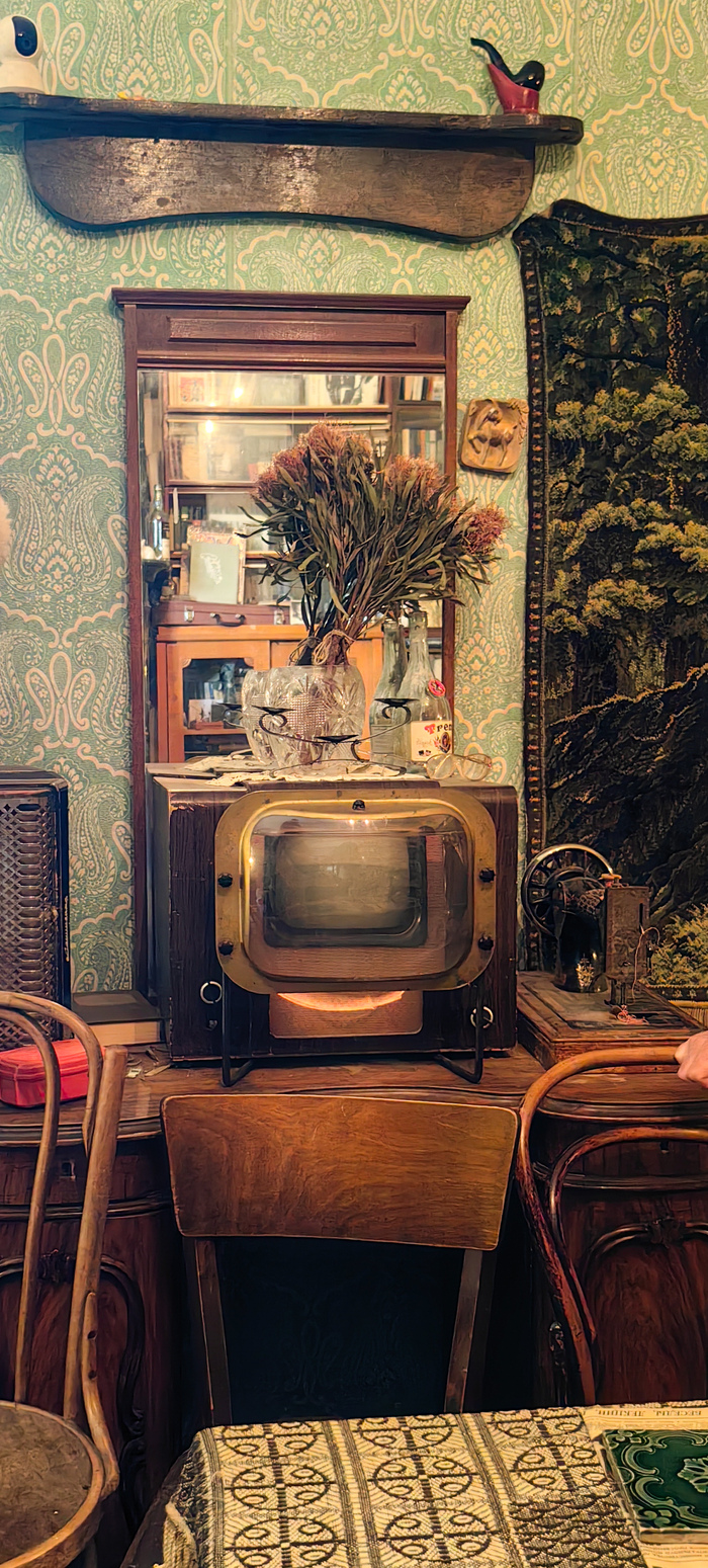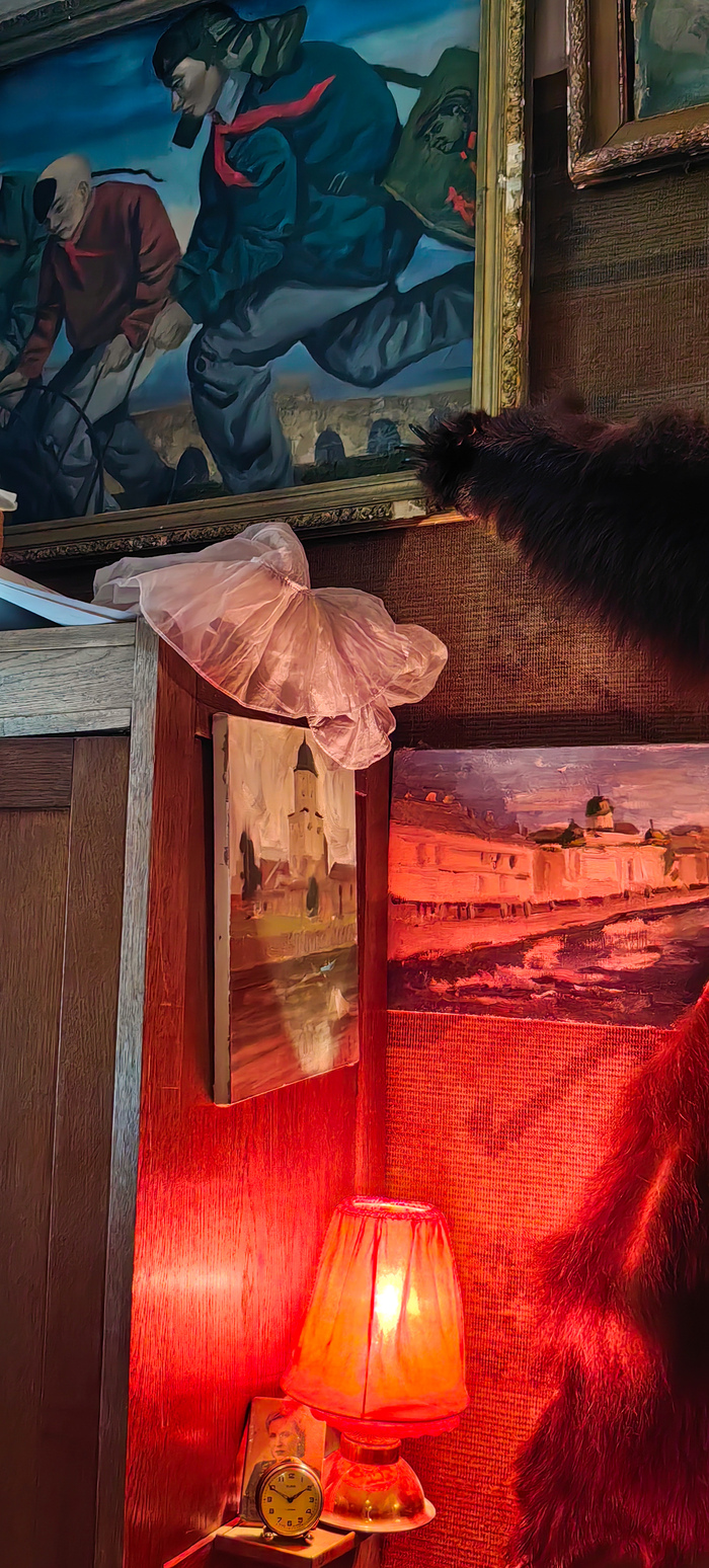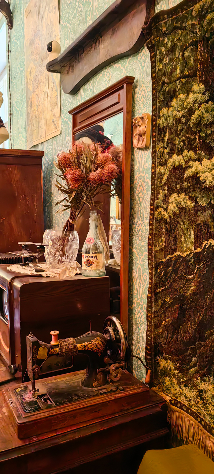В этой комнате можно увидеть множество старинных предметов, которые создают атмосферу той эпохи. Здесь стоит фортепиано, а также телевизор КВН с линзой — настоящая редкость! Холодильник "Саратов", шифоньер и сундук, швейная машинка и старая пружинная кровать — все это напоминает о жизни в Советском Союзе. Не обошлось и без книг: среди них есть даже "О вкусной и здоровой пище" 1952 года издания. А бюст Ленина завершает картину советского интерьера.