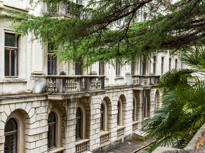 Самая известная сочинская "заброшка". Построенный в 1937 году, он был одним из самых лучших и самых известных санаториев курорта. В 2010 году санаторий был закрыт на реконструкцию, с тех пор медленно, но верно разрушается - никому ненужный...