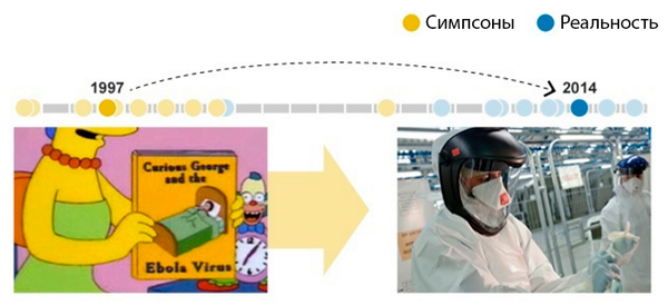 В 1997 году в Симпсонах появилась тема Эболы. В одной из серий был показан автопортрет Барта в виде окровавленного трупа в куче других мертвецов. Подобную ужасающую картину мы наблюдали в Западной Африке 2014-ого.