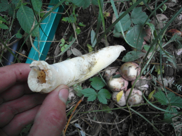 Вот такие вещи выросли на даче в опилках, идут постоянно дожди. Я так предполагаю что это какие то грибы, но от них запах не грибов, а какого то брожения похожий на пивной или винный.
