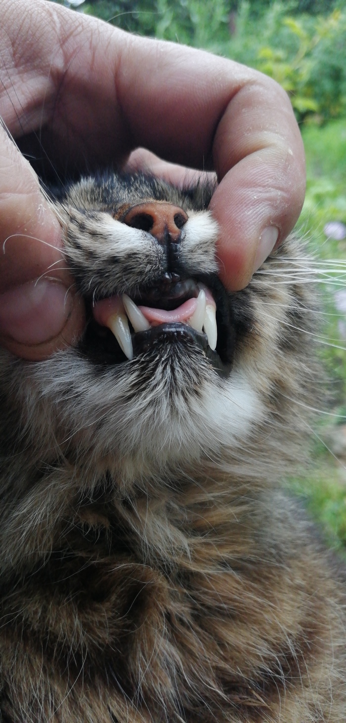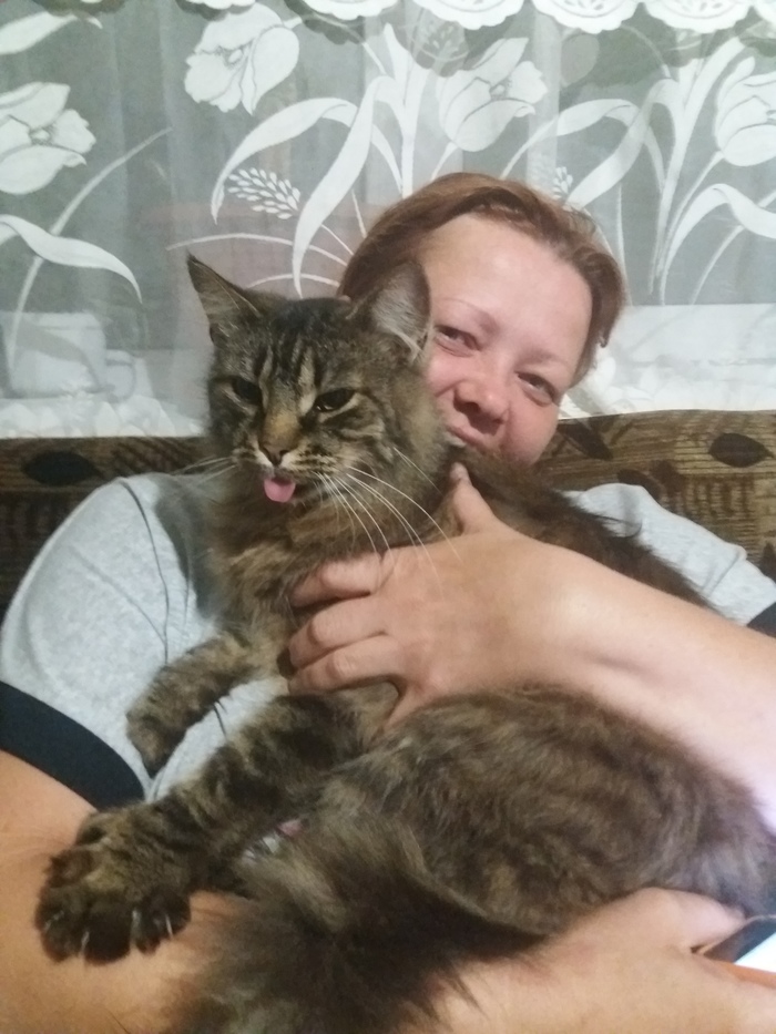 Самое интересное заключается в том, КАК он ко мне попал. Я работал мастером на час, приезжаю к заказчику, открываю кейс, пока ковыряюсь с розетками, он залазит в мой кейс и сидит там. Сидит и орёт. Так продолжалось 3 дня, после чего моё сердце не выдержало и я его забрал себе. Пару дней был дикий, всего боялся, а сейчас это мой самый лучший друг. Обнаружили что это потомок мейкуна, кастрирован. Так же обнаружили у него частичное отсутствие зубов, есть только клыки. Из-за этого у него часто выпадает и зависает язык, закатываю вручнкю.)