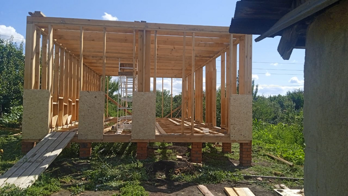 Рассказывать долго, лишний хейт даже от этих, кто считает себя гуру по строительству не вставая с дивана не хочется читать, но скажу так. Можно уложиться в пол ляма и построить дом. Только алгоритм другой. Я готовился около 2 лет (низкая зарплата -25 тысяч сейчас) Если оттолкнуться от привычного алгоритма стройки в пользу принятия самостоятельных решений то вот промежуточный результ. На данный момент дом 6х12, столбчатый фундамент, так как основание песчано гравийное от природы, материал был куплен "не в сезон", то есть дешевле. Строю одн, помогает дочь (за денюжку, хитрая), Отопление будет ленинградка, окна пока что времянки из стекла (самодельные рамы глухие), Вода для технических нужд с речки рядом, через очистку (уже все есть из оборудования), крыша плоская, за парапетом, мембрана. Высота потолков 2.80, 8 окон, Кирпич для возведения ветрозащиты между столбиками купил б-у, ну и получается что мой дом мне обошелся со всей фигней в 500к. Пилмат 50х150 6 метров. Буду потом делать чертежи и мануал. Начал строить 1 мая, сегодня буду обшивать ОСБ, в два слоя по 9 мм. Потому что так проще, когда один. И по поводу электричества - у меня его нет, у меня солнечная электростанция, собирал сам, когда готовился к стройке. Два аккумулятора, две панели, два инвертора. Один слабый, для мелочей типа музыку слушать и ноут включить, а второй мощный, на 2 киловатта, для болгарки и прочего инструмента. , строю на огороде, не ИЖС, но деваться некуда, решать надо вопрос с жильем. Не ищите косяки на фото, они есть, и я про них прекрасно знаю. У меня нет суперского оборудования, советская ножовка и шуруповерт за 1000 рублей. Главное что есть желание.