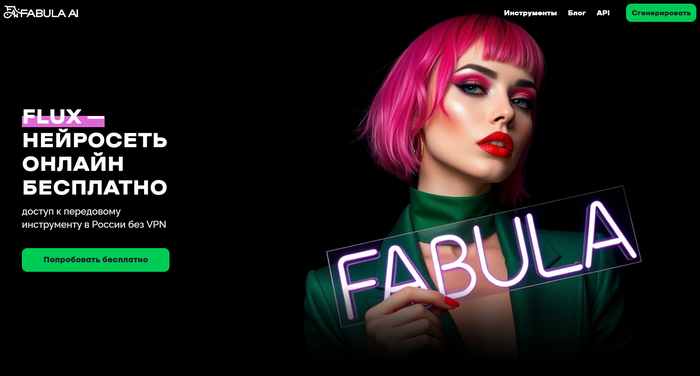 Flux — это бесплатный инструмент на платформе Fabula AI, доступный без VPN для пользователей из России. Он создаёт реалистичные, детализированные изображения высокого качества, пригодные как для коммерческих, так и для творческих целей. Интерфейс интуитивно понятен: достаточно ввести текстовый запрос на русском или английском языке, выбрать нужный формат (например, 1:1, 4:3, 9:16 и др.), и получить готовую картинку в высоком разрешении — с возможностью сохранения и дальнейшего редактирования.