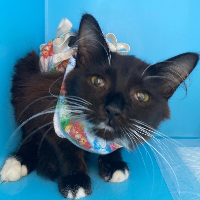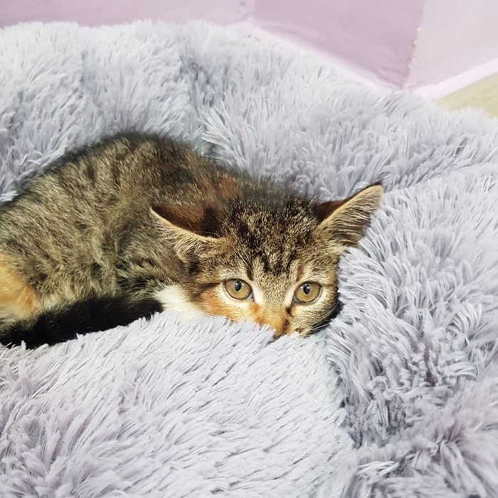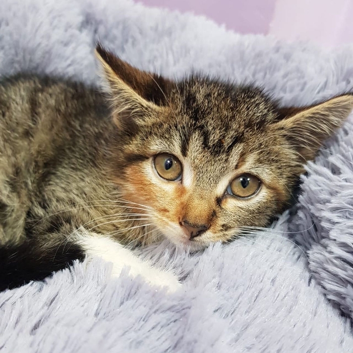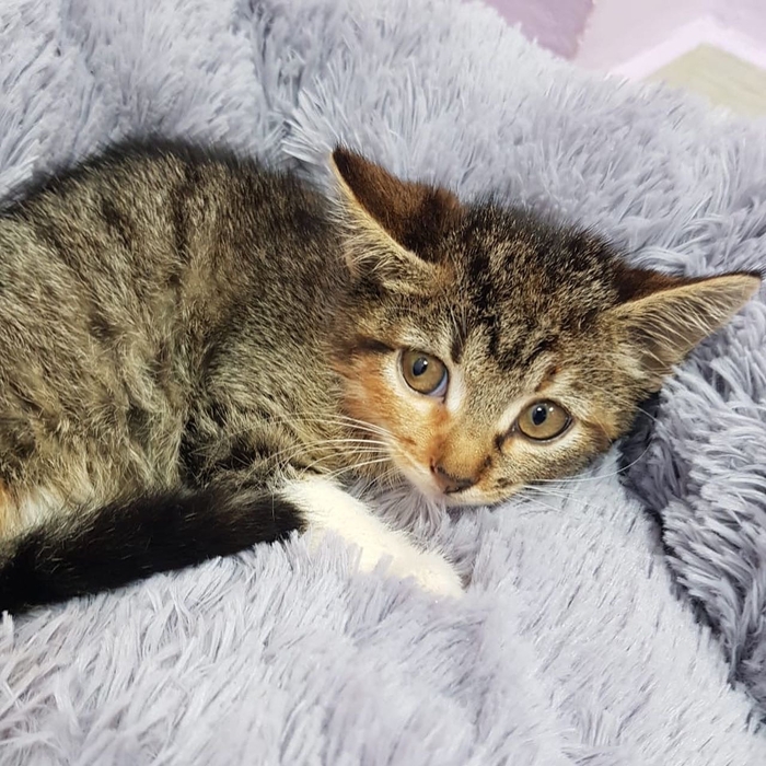 Привезена на программу стерилизации с обычного двора, все что про нее знают,что ласковая и возраст примерно 7-9 месяцев... Котенок еще, но была уже на огромном сроке беременности. Чудо что успели стерилизовать, просто выпускают без поста... а ей самой так хочется шанса...