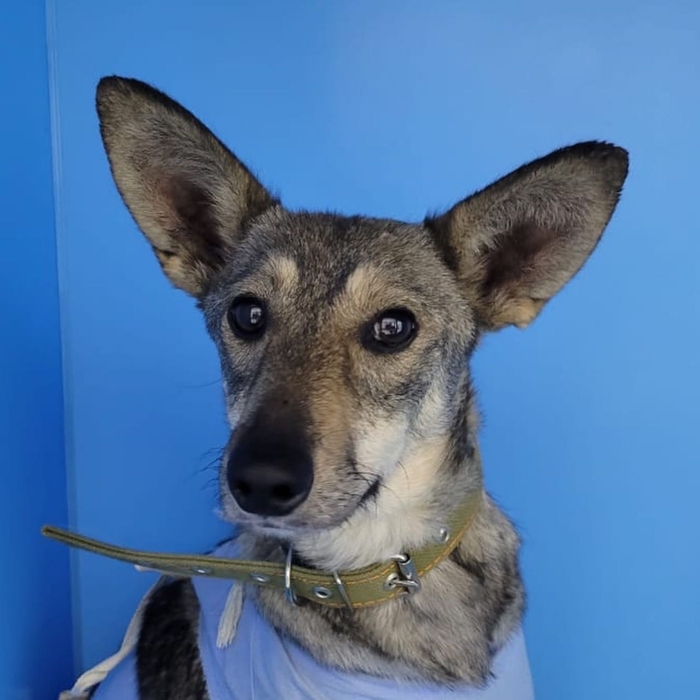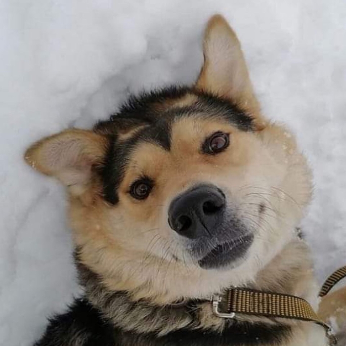 По уму и внешне похожа очень на овчарку. Поводку выучилась за 3 дня. Сейчас терпит туалет уже на двухразовом выгуле и ходит на поводке гулять. Команды старается понять вообще с первого раза. Очень любопытная, хочет всему учиться, верит человеку… Смотрит в глаза так что переворачивается душа…
