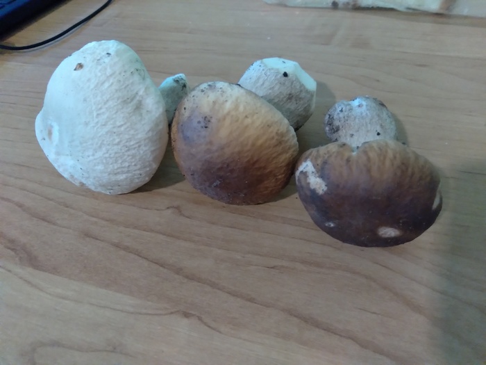 Боровички различных оттенков. Впервые с белой шляпкой, погуглили, да боровичок, но есть не стали, жалко, заморозили пока.