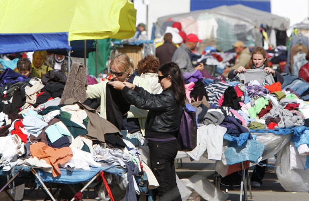 Этот тип потихоньку вымирает, но места еще остаются. Вещи на таких точках очень дешевые и продаются чаще всего на вес. Найти что-то толковое в такой куче очень сложно и очень долго, так как в таких кучах вещи далеко не первой свежести (если к поношенным вещам применимо это). При этом хранение не добавляют им привлекательности.