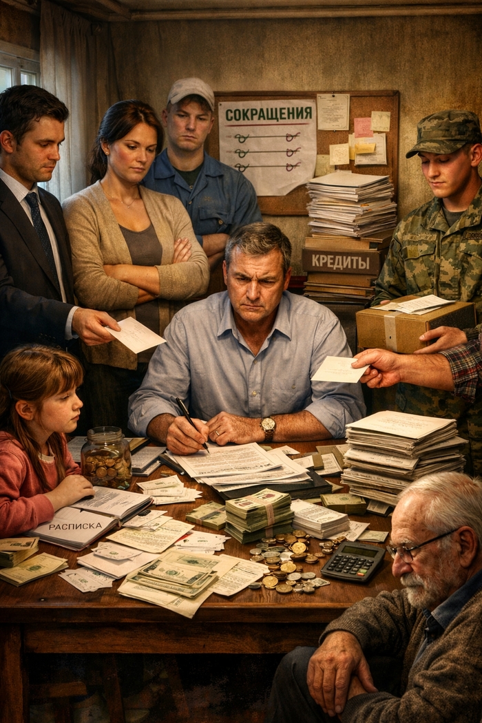 Старшие сыновья зарабатывают и скидываются в семейный бюджет. Но денег на всех не хватает — батя постоянно занимает. В основном у сыновей и немного у коллег. Само собой, под проценты.