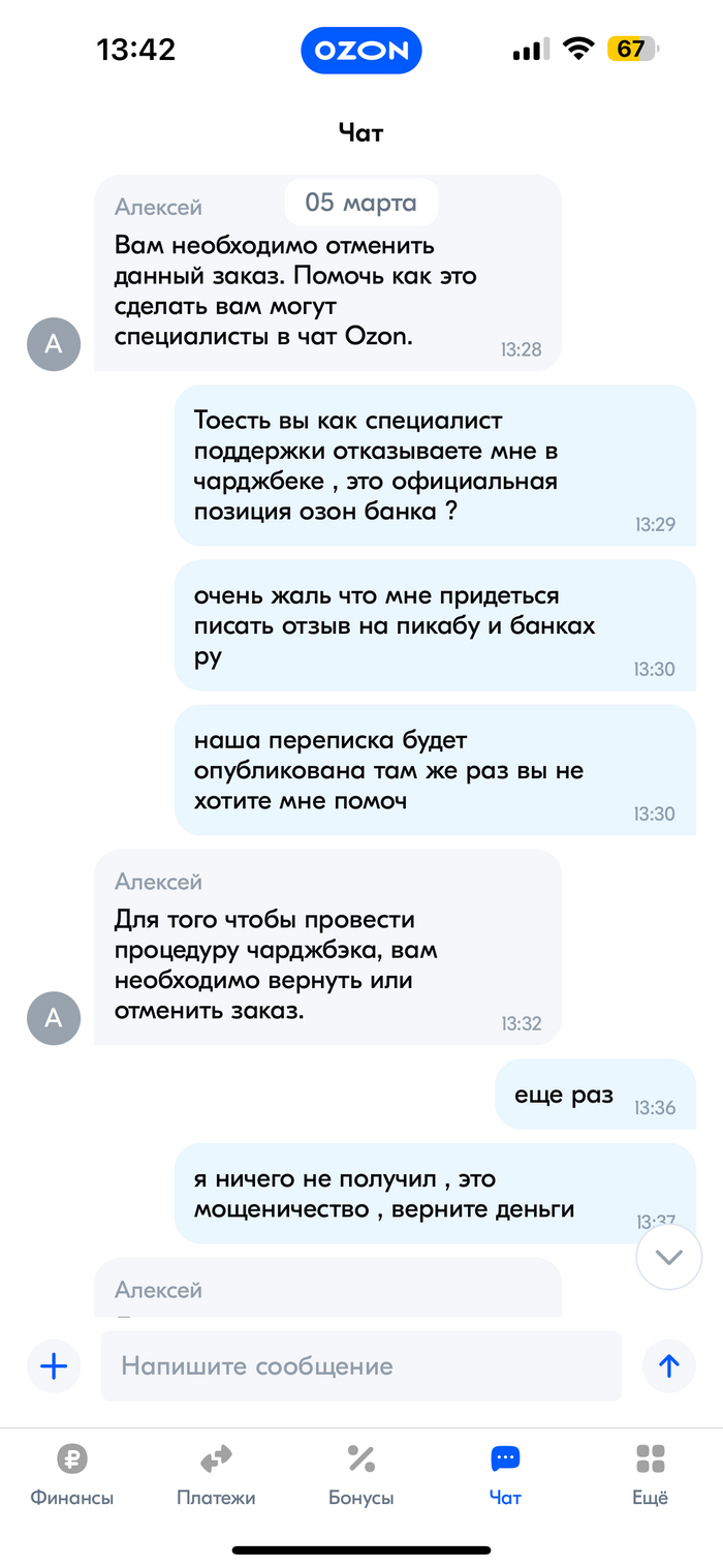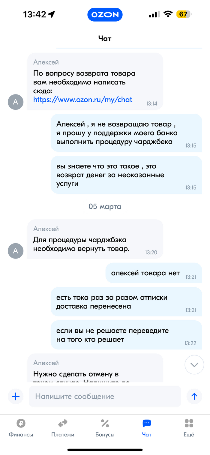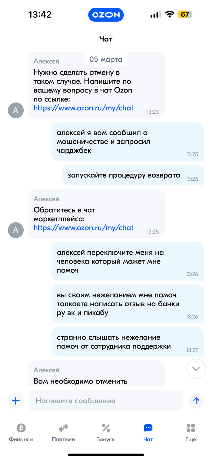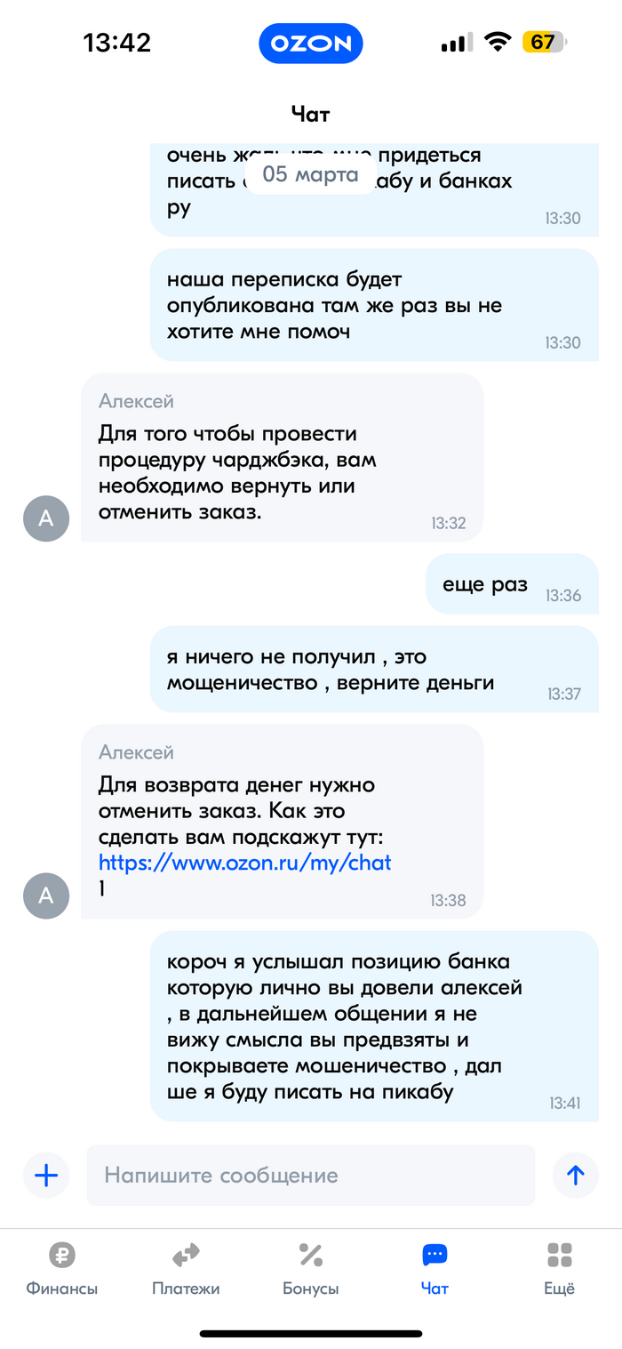 ozon банк , вам то наверно хорошо что товара у меня еще нет а рассрочку я уже плачу , научите там своих сотрудников что такое чарджбек