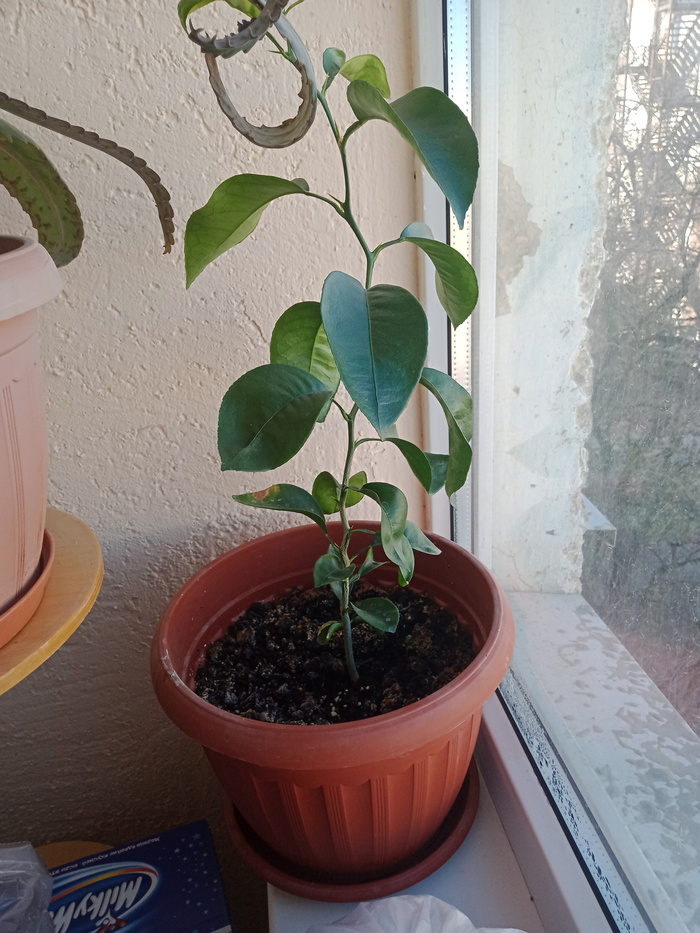 Всем КУ! Моя привычка есть фрукты и кидать семечки в цветочный горшок дала плоды. Взошёл росток, а потом выросло данное дерево. Определить самостоятельно не получается- похожа на всё. Либо мандарин,либо апельсин, либо грейпфрут. На лимон вроде не похоже. На картинках в интернете отсутствуют шипы. Кто знает, подскажите пожалуйста.