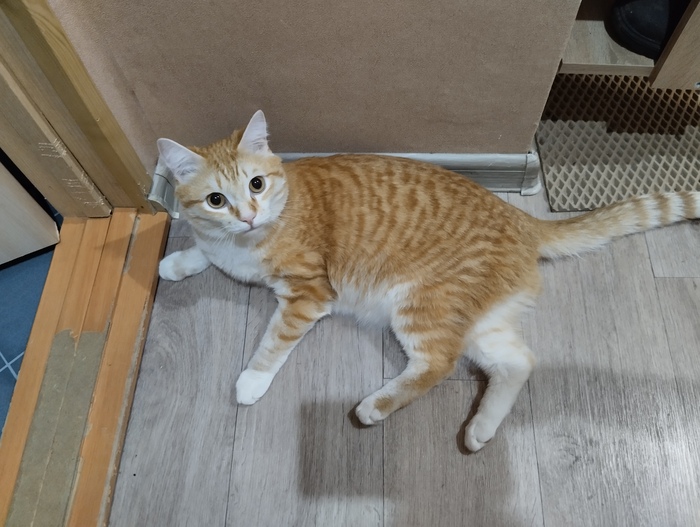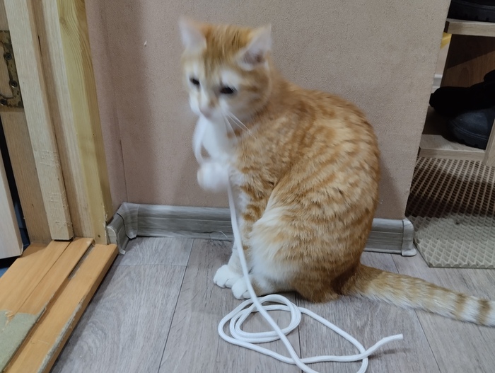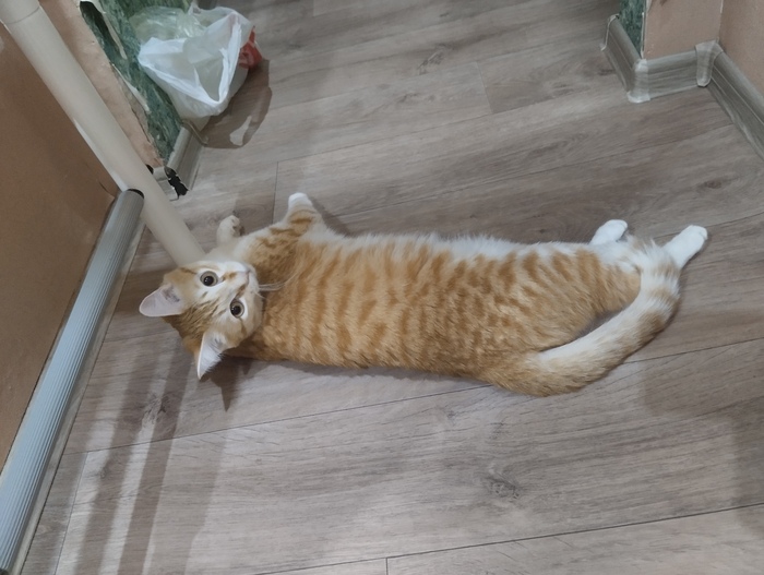 Кот батонится на полу